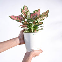 The Aglaonema Pink Beauty, a stunning tropical houseplant, enchants with its striking foliage and ease of care. With glossy, elliptical leaves splashed with shades of pink, green, and cream, it adds a touch of elegance to any indoor space. Belonging to the Araceae family, this low-maintenance plant thrives in indirect light and well-draining soil, making it perfect for both experienced gardeners and beginners alike. Loved for its air-purifying qualities, the Aglaonema Pink Beauty not only beautifies interiors but also enhances air quality, promoting a healthier living environment. Whether displayed solo or as part of a botanical ensemble, this charming plant is sure to steal the spotlight with its beauty and grace.